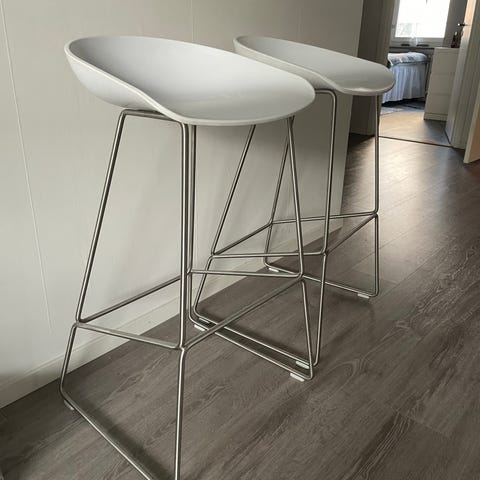 Säljer tre stilrena barstolar i vinröd färg, inspirerade av designklassikern Rey från HAY. Moderna och tidlösa stolar som passar perfekt vid köksö eller bardisk.