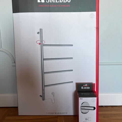 Elektrisk termostat till handdukstork med effekt på 300 W, färg svart. Produkten är avsedd för uppvärmning av handdukar och är tillverkad i material som lämpar sig för badrumsmiljö. Den har klassificering IP45 och är kompatibel med 230 V/50 Hz elnät.