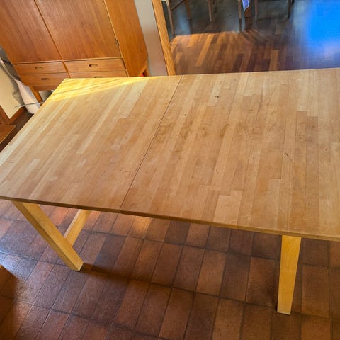 Underbart retro bord som säljs pga flytt . Trä ben och perstorps platta , troligen 60-tal. Normala bruks spår, . Säljs nedmonterat . Hiss finns . Hämtas i Lorensberg