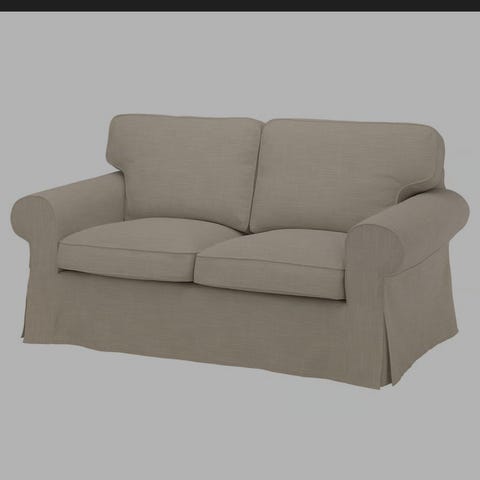 Fin soffa Ektorp 2-sits Beige med bladmönster.