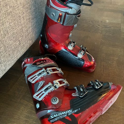Svarta pjäxor från Salomon, sparsamt använda under 2 säsonger i storlek 20/20,5, 24,5 cm.