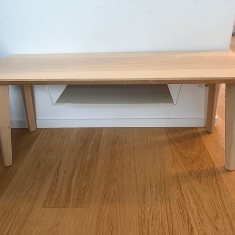 Funktionellt rektangulärt soffbord med två skivor. Bred hyllan under bordsskivan är en perfekt plats att förvara tidningar, fjärrkontroller och alla andra små saker som man behöver ha nära till hands.