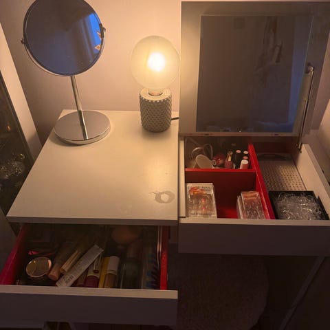Vit hylla inklusive konsoler i svart. Praktisk som hall hylla/ sminkbord mm.