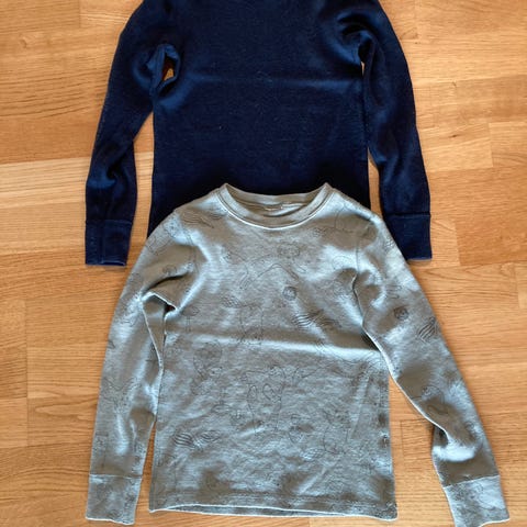 Merinoulls underställsbyxa samt ett par fleecebyxor, båda strl 122-128. 200kr för båda