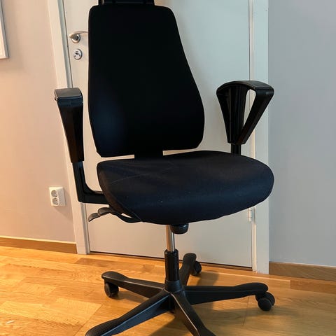 Säljes billigt då den blir för stor för mitt kommande boende. Flitigt använd men håller fortfarande kvalitet! Den har tyvärr spruckna handtag på sidorna men alla "funktioner" med stolen finns fortfarande - som justerbart ryggstöd och möjlighet att vinkla och sänka handtag. Går givetvis också höja och sänka för sitthöjd och fälla ryggstöd.
