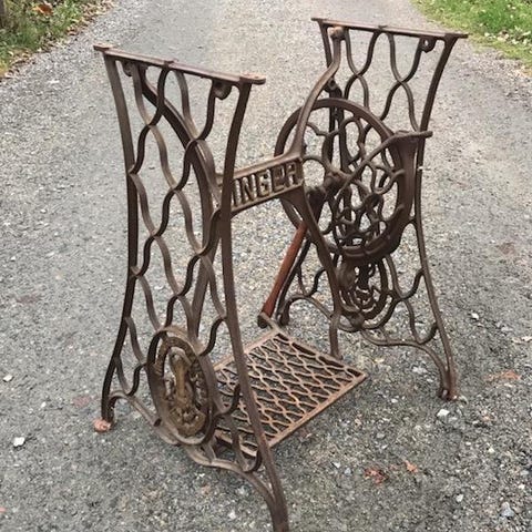 Antikt symaskinsunderrede i gjutjärn, Singer. Perfekt att göra om till ett trädgårdsbord. Fint underrede.