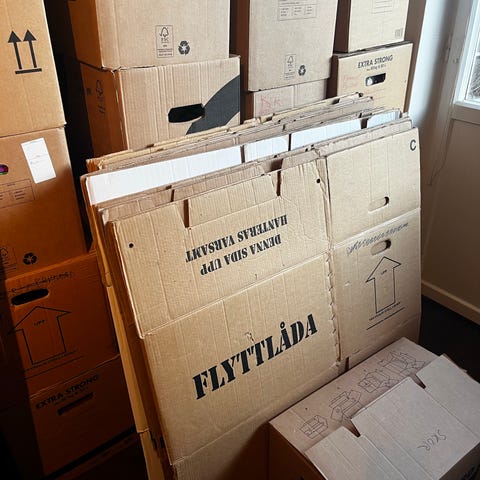 Flyttkartonger i storlek large, 40 kg. Säljes för 10kr/st. Finns totalt 50 st.