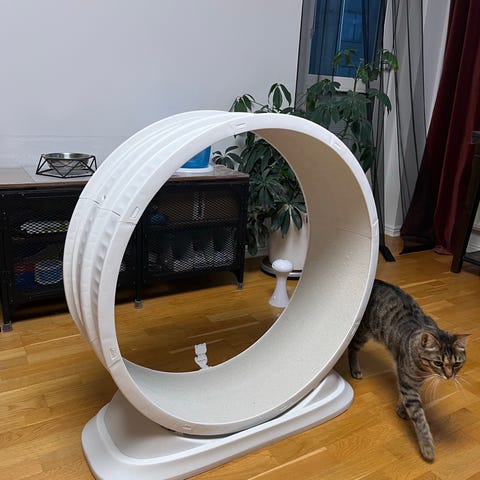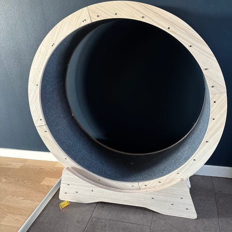 Ge din katt en utmaning med detta snygga träningshjul för katt! Trähjulet ger hälsosam träning och timmar av lek. Material: trä och plast Med sisal klösmatta på utsidan och fodrad löpyta inuti.