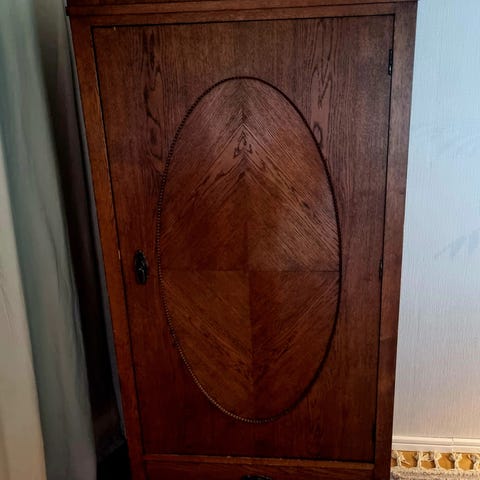 Helt funktionell garderob med klädstång och 3 hyllplan. Den rymmer verkligen mycket kläder.