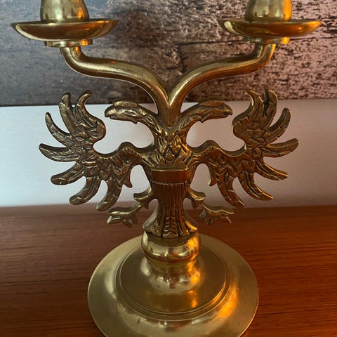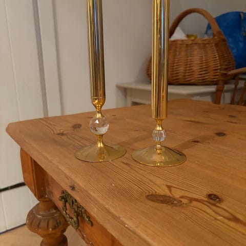 Stearinljusstake för stearinljus. Karlskronalyktan har en fjädermatning som gör att stearinljuslågan alltid befinner sig mitt i glaskupan.