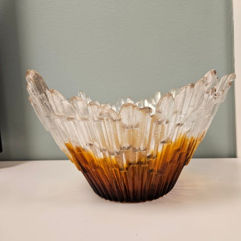 Röd glaskula med bubblor. Diameter cirka 8 cm.