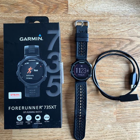 Klockan har inte använts på länge, är helt utan repor och i väldigt fint skick. Den har aldrig använts till tung träning utan bara för vardaglig mätning av steg och puls. Batteriet håller i nästan två veckor (om den används utan GPS-funktioner).