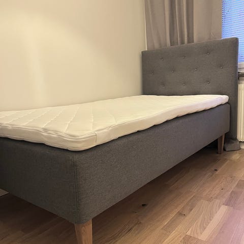 160 säng som är grå från Mio med sänggavel.