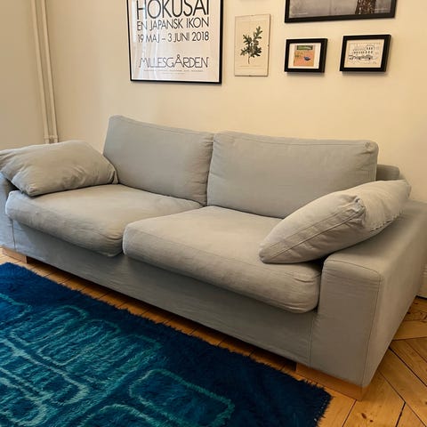 Vi säljer vår två soffor, en tresits o en tvåsits med avtagbar o tvättbar klädsel.
