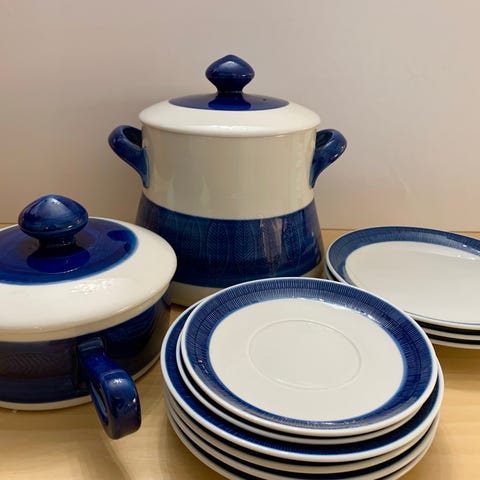 1 såskanna, 1 fat, 8 mattallrikar, 8 mindre tallrikar