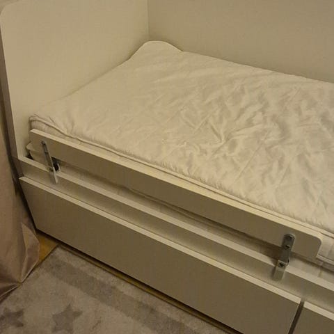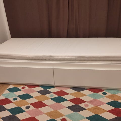 Praktisk säng eller soffa som går att dra ut till dubbelsäng. Under sängen finns två rymliga lådor.