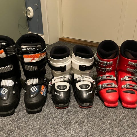 Barn pjäxor i olika strl. Lite svårt att utlösa på alla men troligen