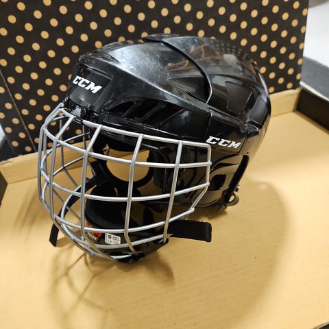 CCM FL40 ishockeyhjälm i svart färg med metallgaller. Hjälmen är avsedd för ishockey