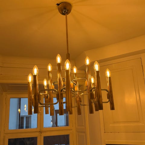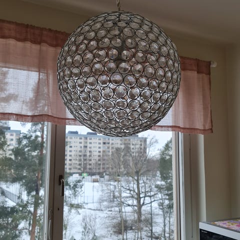 Diametern på lampan är 50 cm och den är ca 15-20 cm hög exklusive hänganordning.