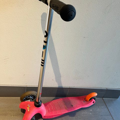 Micro Mini Kickboard sparkcykel i röd färg. Utrustad med tre hjul för stabilitet och handtag med greppvänligt material. Passar barn för lek och transport.