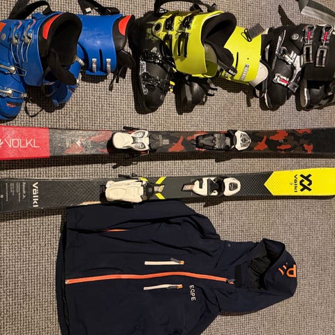 Roliga skidor med något slitna belag men inget som påverkar åkningen