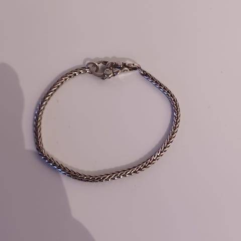 Solid silver armlänk i mycket gott skick. Inv 19 cm till öppningen. Utv 23 cm till öppning bredd 2 cm och vikt drygt 100 gr.