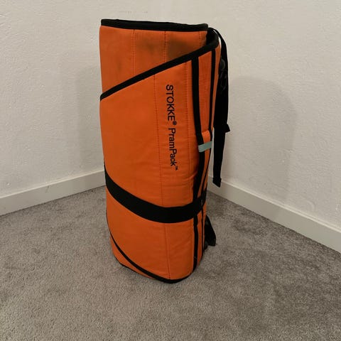 Mycket praktisk och robust väska för att transportera barnvagn. Rullar enkelt ihop.