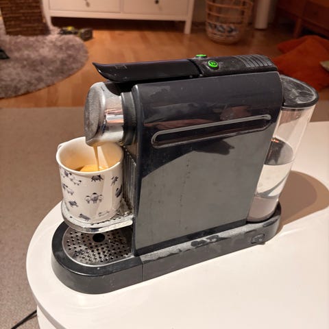 Nespresso kaffemaskin i vit färg.