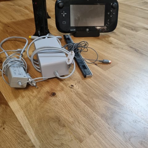 Nintendo Wii U Spelkonsol Mario Kart 8 Premium Set inklusive Wii U GamePad, Mario Kart 8 spel, laddare och tillbehör. Konsolen är svart och levereras med originalförpackning och manualer. Passar för spelare som vill använda Nintendo Wii U-systemet.