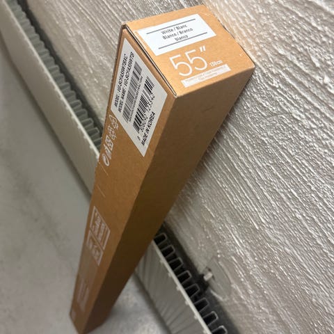 Samsung the frame med extra mörkt brun ram och låg profil vägg fästing