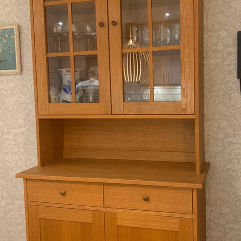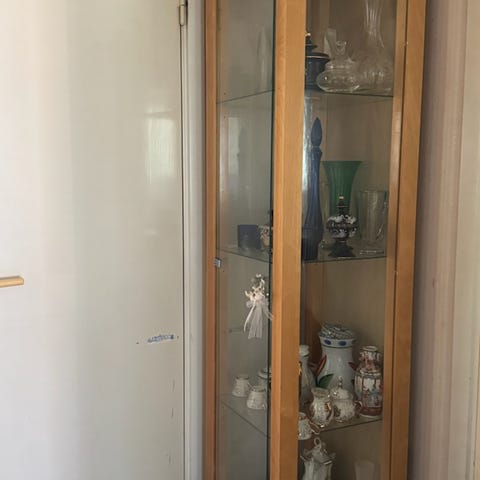 5 st vitrinskåp i ek ön med måtten 140x90x30 i ek, 250 kr /styck (måste bort inom 2 dagar därav priset)