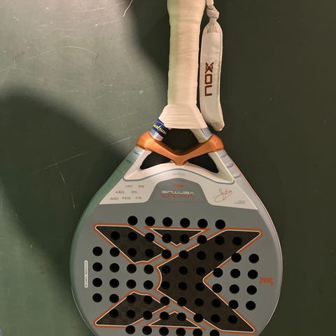 Padelrack At10 Genius 18k 2025-års modell. Jag har spelat med racket i cirka 2 månader. Finns lite lackslitage på vissa ställen, dock inga sprickor och annat som påverkar spelet.