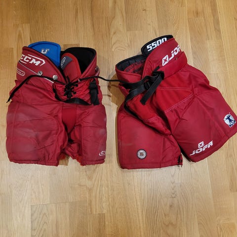 Hockeybyxor i stl 120-130. I fint skick men finns spår av användning. Tar fler bilder om så önskas.