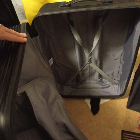 Samsonite resväska i plast i rosa färg. Resväskan har ett hårt skal och är utrustad med handtag och hjul för enkel transport. Inköpt för 1,5 år sen i Mall of Scandinavia.