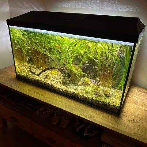 Akvariet är välskött och allt fungerar som det ska. Perfekt som en inredningsdetalj eller för barnrummet.