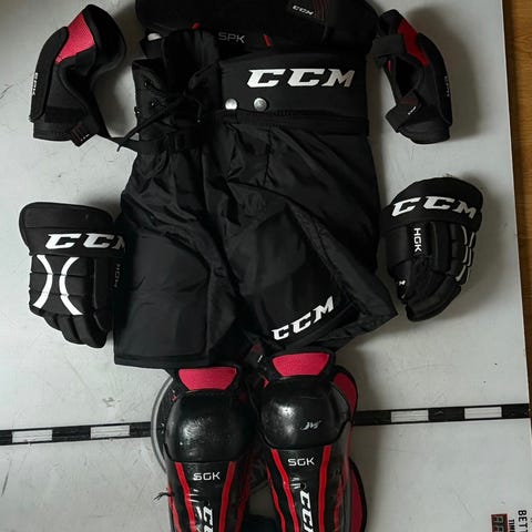 Diverse hockeyutrustning säljes. Storlekar framgår av bilder.