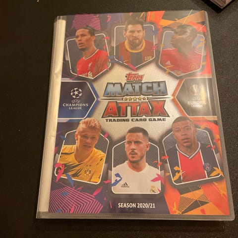 Topps Match Attax samlarkort album med UEFA Champions League-tema. Albumet innehåller sidor för att organisera och visa samlarkort från olika fotbollslag och spelare. Används för att lagra och visa kort i samlingen. På köpet kan jag skicka med en ask med massa olika fotbollskort:) pris kan diskuteras