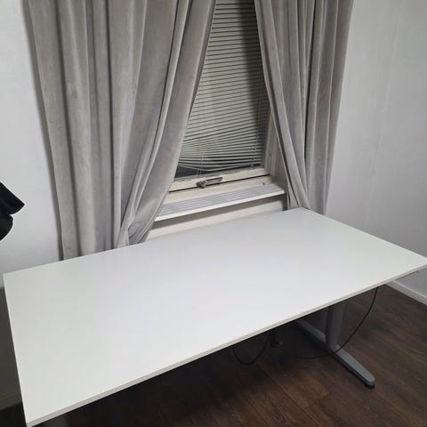 Skrivbord med elektrisk höj- och sänkfunktion.