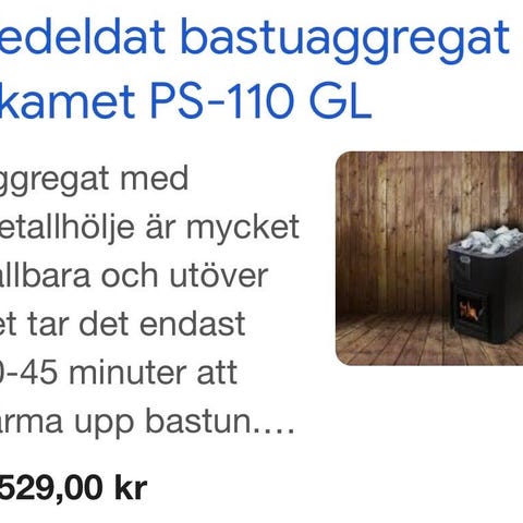 Säljer ett helt nytt bastuaggregat för vedeldad bastu PS 110 kostar 6500kr och en rostfri vattentank som är på 22 liter helt ny kostar 5900kr totalt kostade allt 12.500kr säljer nu för 5500kr billigare vid snabb affär, finns i Svedala, men kan även hämtas i Malmö