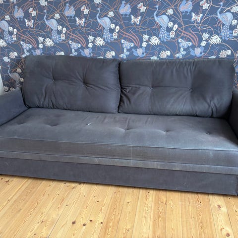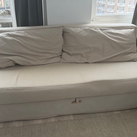 Säljer en beige bäddsoffa från Ikea Älvdalen. Soffan är lätt att bädda ut och det finns även förvaringsmöjlighet i soffan