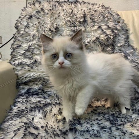 Raggdoll hane. Klas är lite blyg men väldigt nyfiken och vill vara med. Lugn i personligheten men en riktigt skojig liten katt som älskar att busa och leka