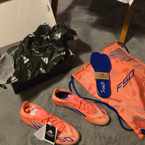 Säljer en julklapp som inte passade, nämligen ett par Adidas F50 Elite FG fotbollsskor i orange färg. Skorna är storlek 38 och passade tyvärr inte som julklapp. Därför är det i helt nyskick och endast prövade om det passar. Med dem ingår ett extra par sulor och en påse i matchande färg. Finns i Helsingborg att hämta men skickar självklart om man vill. Hör av er vid frågor! Pris kan även diskuteras vid snabb affär.
