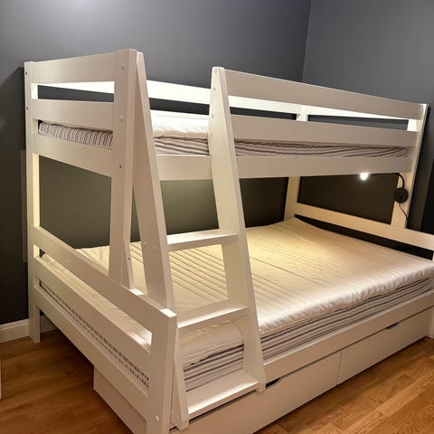 Skummadrasser från IKEA på 12 cm ingår till både under och överslaf.