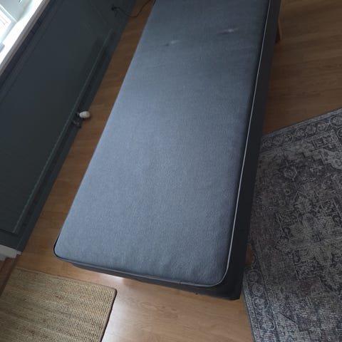 Om du behöver extra förvaring nära kan du hänga sängfickan MÖJLIGHET över sängens huvud- eller fotgavel.