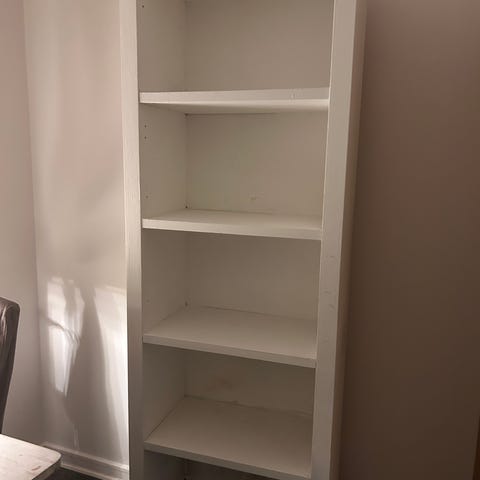 Bokhylla, ytskikt av vit melanin med flyttbara hyllor.