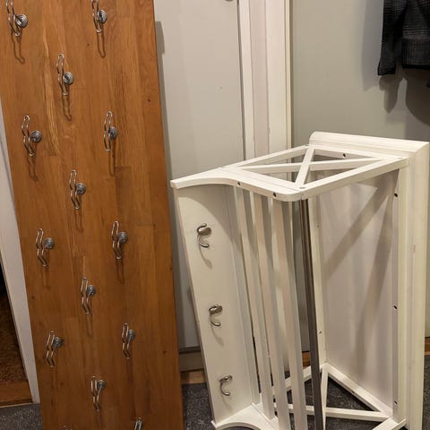 Säljes en variant på hatthylla, perfekt om du har en trång eller en hall med många vinklar där en vanlig hatthylla inte får plats.