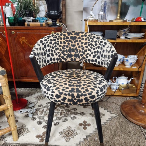 En fin retro stol / fåtölj med ett unikt mönster som passar perfekt i alla rum. Stolen har vackra trä ben.