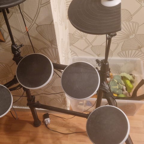 Alesis Debut juniortrumset i mycket bra skick. Pall och trumpinnar ingår, även orginalkartong finns kvar.