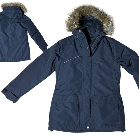 • Har lite slitage (ex. märkena är lite skavda och vid dragkedjan) och ett hål är lagat i luvan (vilket inte syns vid användning).