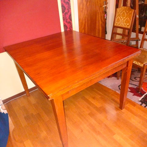 Bordet är i mycket gott skick, väl omhändertaget och med normalt bruksslitage. Ek är ett tåligt och hållbart träslag som åldras vackert. Med slipning och olja så blir den i princip helt ny.